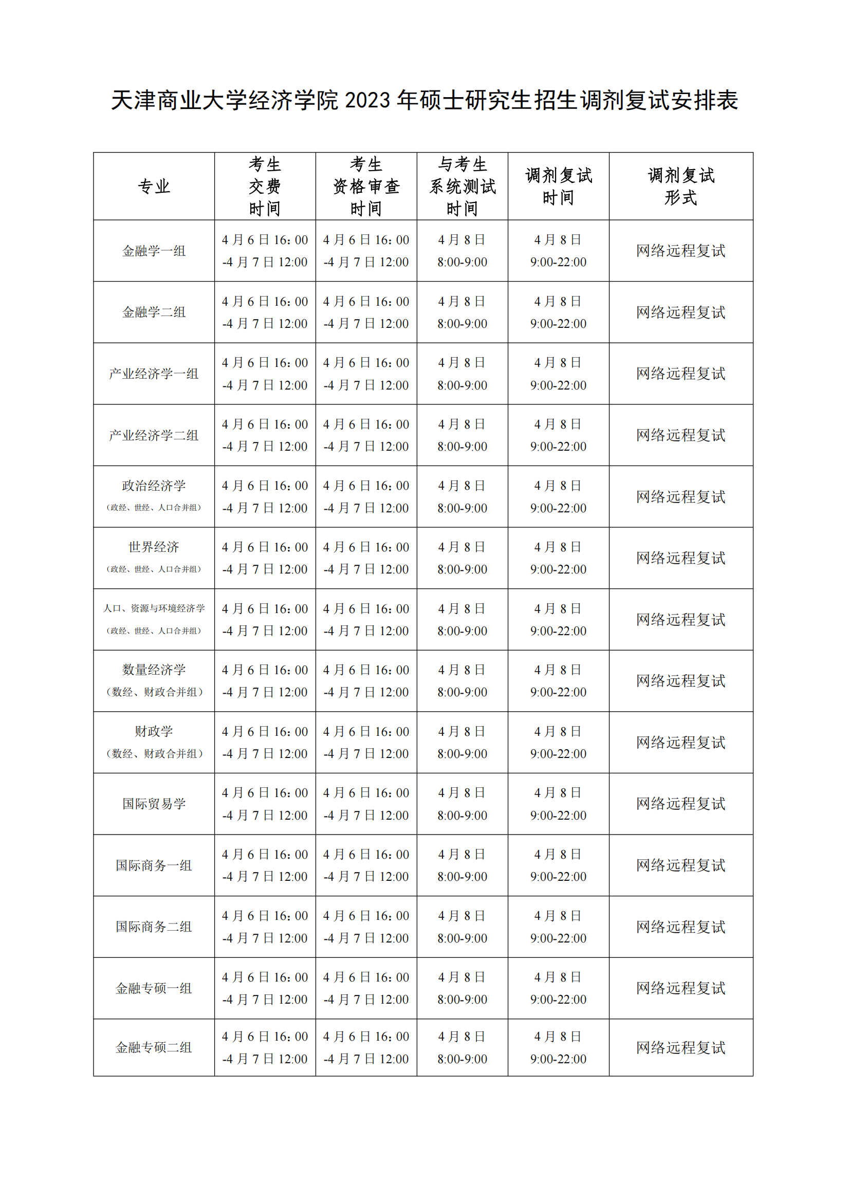3. 考生应保持手机通讯畅通,方便工作人员联系,提前进行系统调试,系统测试时间和复试时间为: