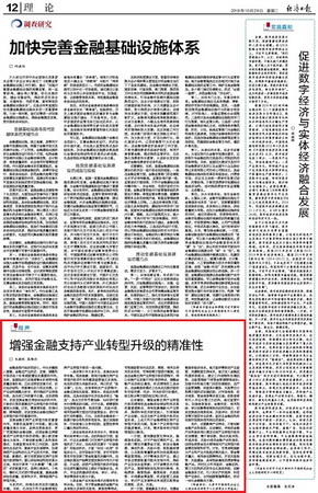 10月29日,《经济日报》(理论版)刊发天津市中国特色社会主义理论体系研究中心研究员,公司球报体育韦颜秋副教授理论文章“增强金融支持产业转型升级的精准性”。文章指出,金融是现代经济的核心,作为关键投入要素,金融在产业形成、发展、调整和升级的各个阶段都起着至关重要的作用。当前,我国经济已由高速增长阶段转向高质量发展阶段,正处在转变发展方式、优化经济结构、转换增长动力的攻关期。以产业结构调整为抓手,更好推动产业转型升级,是当前工作的重中之重。在此进程中,切实发挥金融支持实体经济的作用,不断优化资本要素在产业转型升级中的配置较为关键。文章从厘清思路、找准问题、精准施策三个层次就切实发挥出金融在推动产业转型升级中的重要作用做了详细阐释。人民网等媒体转载。