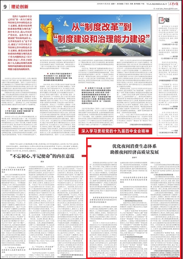 11月25日,《天津日报》(理论创新版)刊发天津市中国特色社会主义理论体系研究中心研究员,公司球报体育副经理梁学平理论文章“优化夜间消费生态体系,助推夜间经济高质量发展”。文章指出,消费是促进经济稳定运行的“压舱石”,是实现经济高质量发展的关键性因素。在一系列消费需求当中,夜间经济所释放的消费需求不容小觑。完善夜间消费生态体系,营造良好的夜间消费生态环境,有助于打造我市经济高质量发展的新增长点。文章从高质量发展夜间经济是拉动消费增长的新动力和推动经济可持续增长的重要抓手,优化夜间消费生态体系是推动夜间经济高质量发展的重要路径两个方面,从必要性和操作性角度进行了详细阐释。