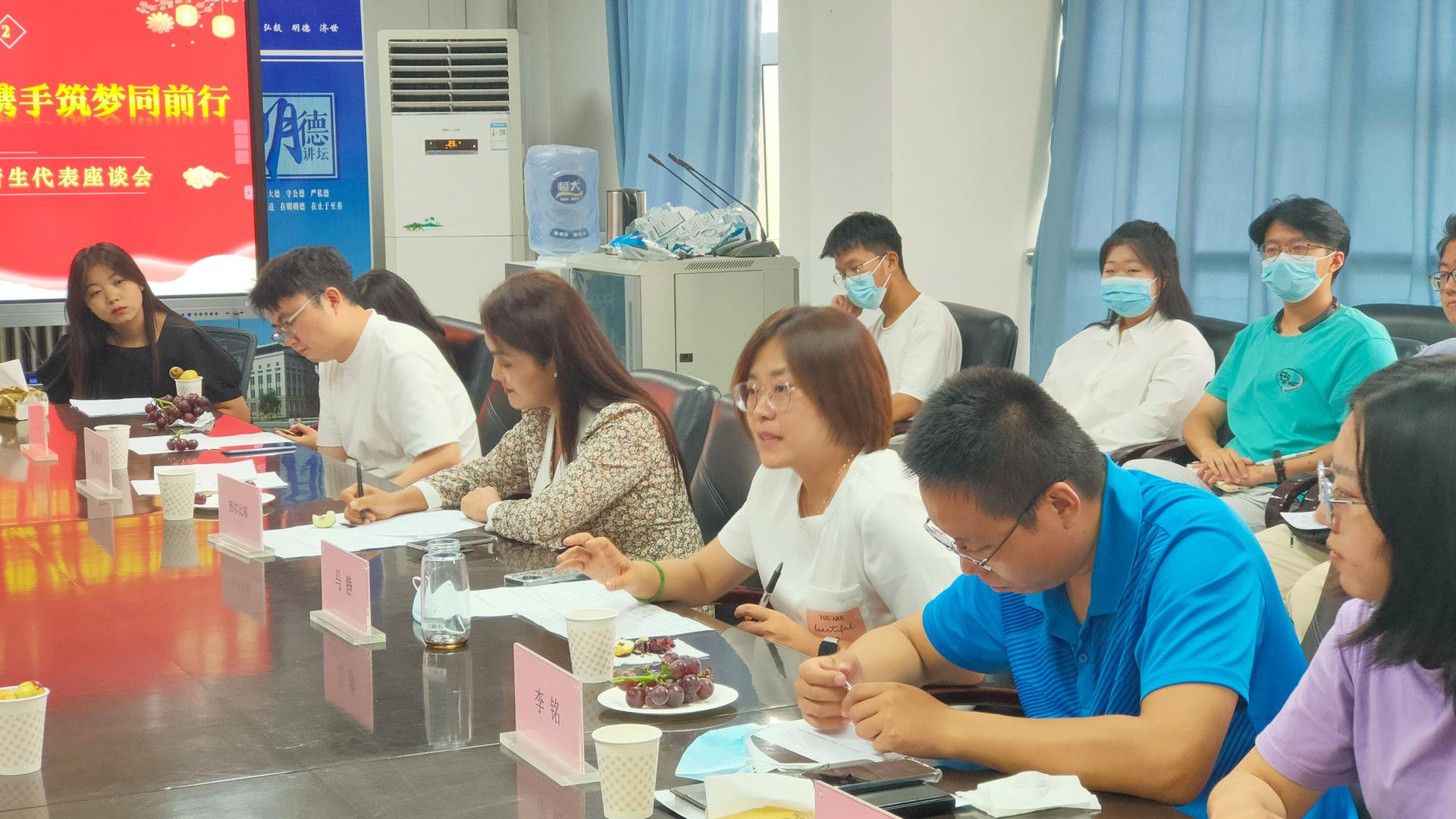 座谈会上,师生围坐在一起,亲切交流。员工代表积极发言,纷纷表示,虽然无法回家过节,与亲人团聚,但感受到了公司的关怀,倍感温暖。会中,同学们围绕接受新生入学教育后的学习感悟、生活点滴、教学资源、校园环境、同学友谊等畅谈真实感受,积极表达了对公司、老师和同学们给予关怀和帮助的衷心感谢。有的同学提出了在生涯规划方面存在的困惑。与会辅导员老师逐一从思想引领、心理疏导、学业支持、实践创新、生涯指导等方面帮助员工作出了规划,并给同学们送去了节日的祝福。